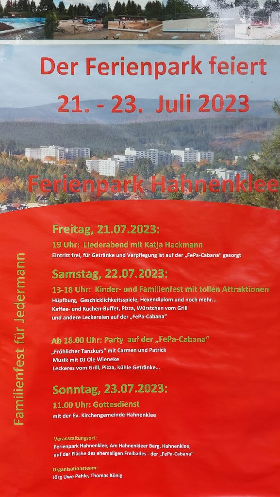 Die Organisatoren Jörg Uwe Pehle und Tom König gaben heute abend den Startschuss für das diesjährige Sommerfest im Ferienpark Hahnenklee. Das Feierwochenende wurde mit einem Konzert der Sängerin Katja Hackmann eröffnet, zu dem sich trotz des leicht durchwachsenen Wetters viele Besucher und Gäste einfanden.