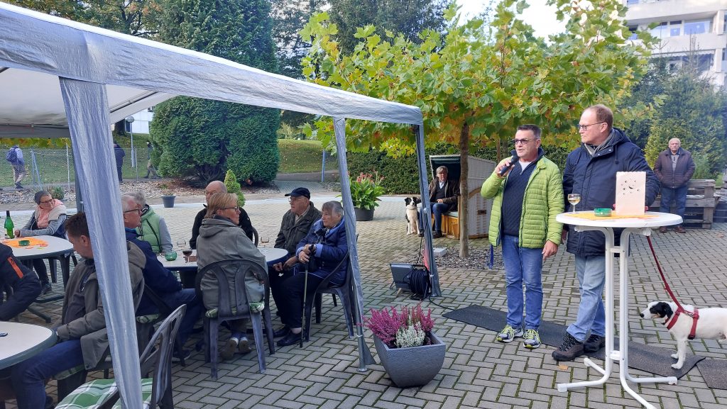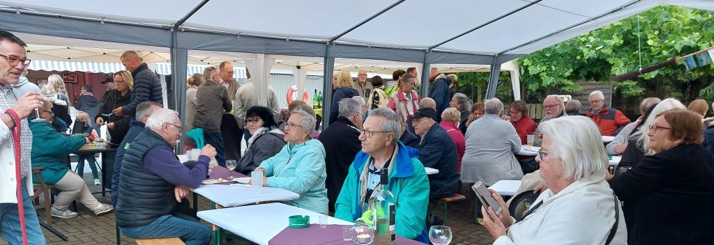 Und so dankte Organisator (und Pfarrer) Jörg Uwe Pehle in seiner Eröffnungsansprache auch mit einem Blick nach oben für Sonnenschein und erträgliche Temperaturen – und so konnten auch die fast 100 Gäste dem Weingott Bacchus tatkräftig ihren Tribut zollen.
