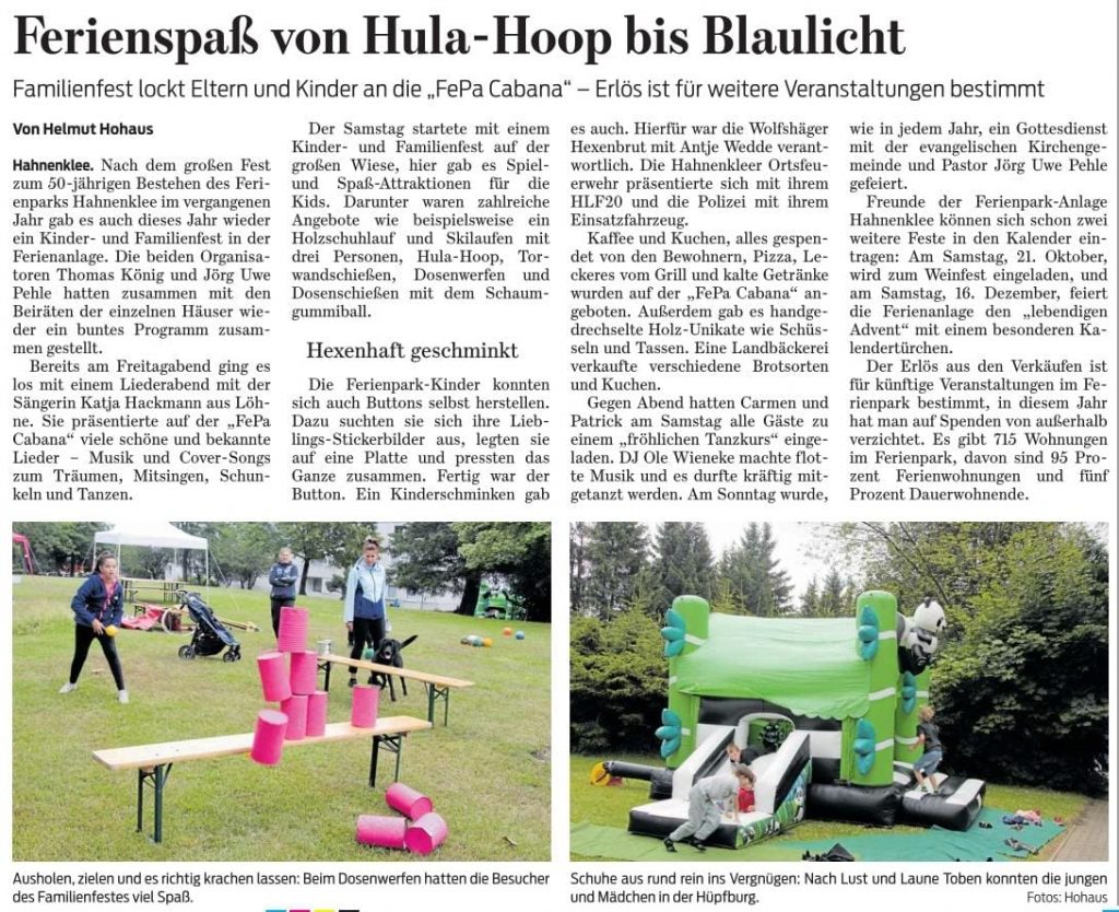 24.07.2023 Bericht in der Goslarschen Zeitung über das Sommerfest