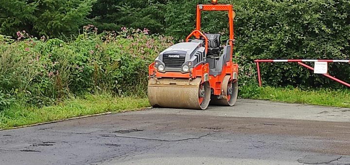 Als die Arbeiten heute früh vor Haus 7 begannen, wurde tatsächlich ein kleiner Abschnitt komplett als Fläche neu geteert.