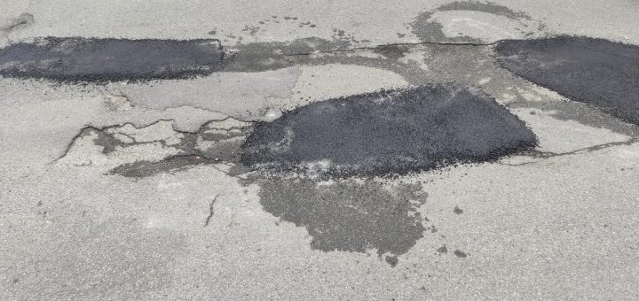 Doch weit gefehlt: Nachdem diese wenigen Quadratmeter fertiggestellt waren, wurde der Rest nur noch geflickt. Statt über Schlaglöcher fährt man jetzt über Teerberge.