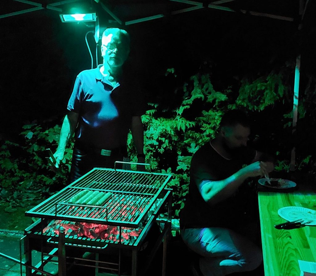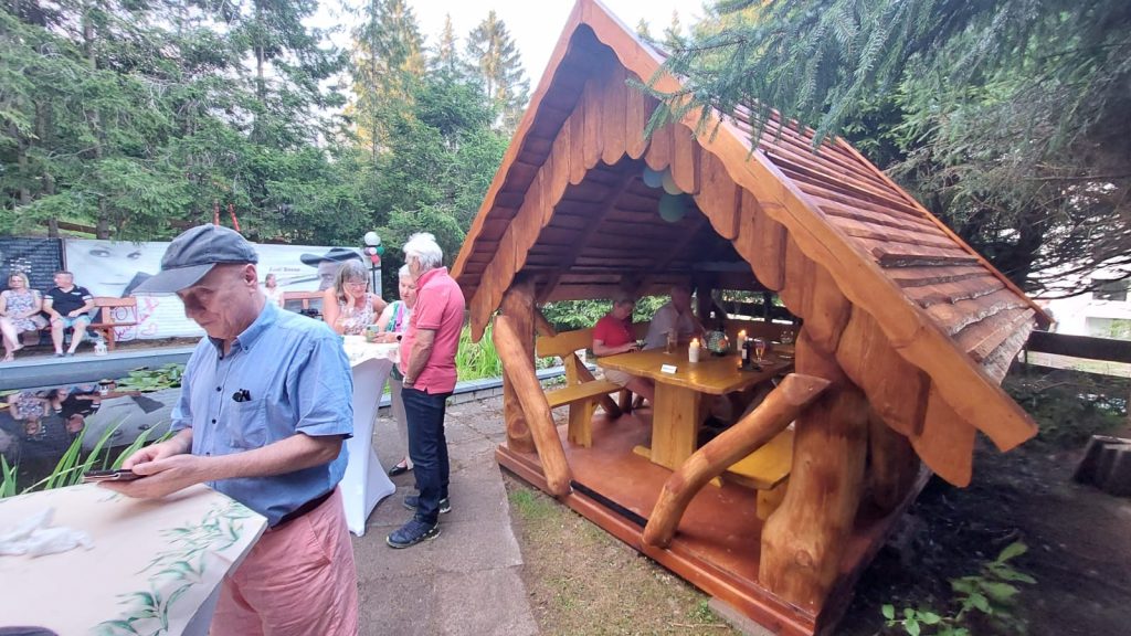 In diesem Maße nicht erwartet: Das diesjährige Sommerfest im Ferienpark – diesmal von Manu und Klaus vom Paul-Lincke-Treff organisiert – wurde von weit mehr als 120 Gästen besucht, die den warmen Sommerabend bei Live-Musik und kulinarischer Versorgung genießen konnten. Mehrfach musste für Nachschub bei Speisen und Getränken gesorgt werden. Die Freifläche vor der “Kneipe der tausend Noten” war ja bereits von Manu, Klaus und ihren Helfern rund um den von ihnen renaturierten Teich mit einer Gästehütte und Bänken erweitert worden: